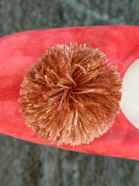 Babouches Femmes en daim corail pompons vieux rose et argentés